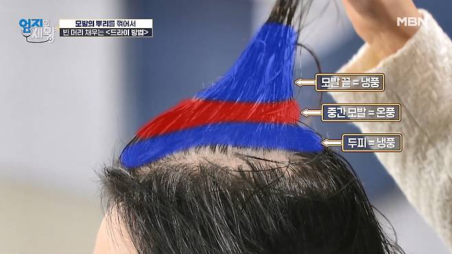 중간 모발만 온풍으로 말리는 것이