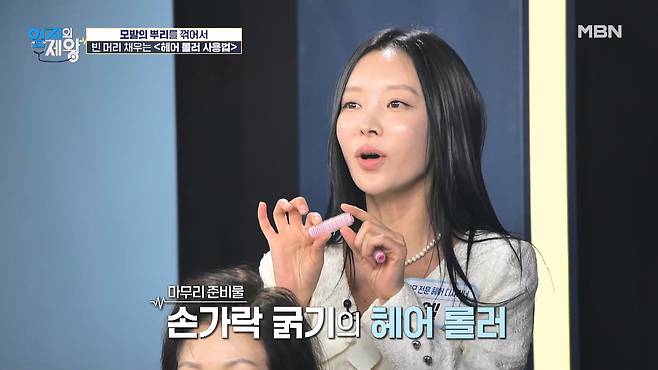 그 사이에 헤어롤을 끼워 넣습니다