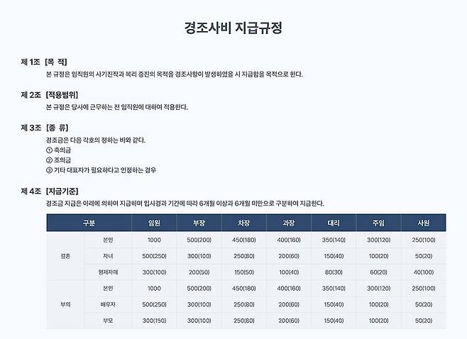 임직원에게 지급하는 축의금이나 부조금 등의 경조사비를 세법에서 ‘복리후생비’로 정의합니다. 복리후생비는 보수 외에 근로자의 복지와 후생을 위해 지불하는 경비를 말합니다. 회사를 다녀본 사장님이라면 회사의 복리후생 내규를 보신 적도 있으실 텐데요.