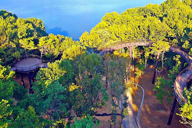 총 길이 167m, 높이 25m의 하늘전망대는 금광호수를 병풍처럼 둘러싼 금북정맥과 함께 파노라마처럼 펼쳐지는 장관을 선사한다.