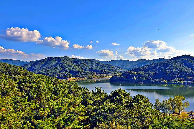 특히 정상에 올라서면 푸른 수면과 곧게 뻗은 능선이 어우러져 한 폭의 수묵화 같은 풍경이 펼쳐진다.