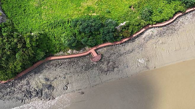 해안탐방로는 성인 2명이 나란히 걸을 수 있는 너비로, 완만하고 잘 정비된 데크길이 이어집니다.