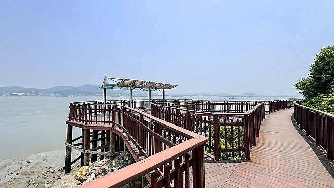 한쪽으로는 끝없이 펼쳐진 서해 갯벌, 다른 한쪽으로는 염하 수로가 흐르며 조용한 수면 위 풍경을 선사하죠.