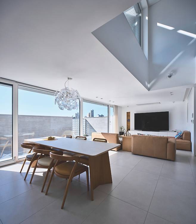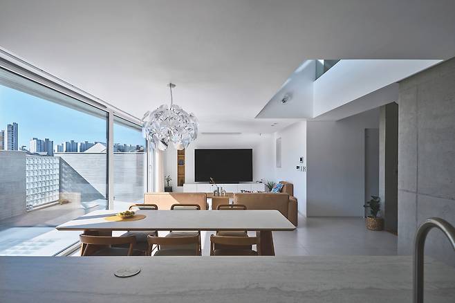 막을 곳은 확실히 막고 열 곳은 확실히 여는 집, 풍부한 일조와 시원한 조망을 갖춘 집을 상상하며 설계했다. 감추고 싶은 마음과 드러내고 싶은 마음의 조화랄까. 늘 그렇지만 한 가족의 워너비 주택을 설계한다는 건 그들의 마음속에 있는 다양한 모순을 이해하고 풀어내는 과정이다.