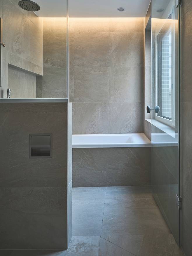 2층은 1층과 달리 오밀조밀한 벽체로 자녀 각자의 프라이버시를 최대한 확보하는 형태로 구성했다. 각각의 침실이 좌우에 배치되는데 침실과 드레스룸, 별도의 욕실이 패키지로 묶이는 호텔의 세미 스위트룸 형식을 적용했다. 성장한 자녀들이 넉넉한 개인 공간을 온전히 소유하길 바라는 부모의 의견을 적극 반영한 형태였다.