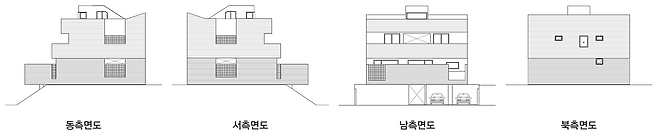 주차장 두 면 확보, 인접 경계선 이격거리, 일조권 사선을 적용하다 보면 필지의 대부분은 작은 마당이 조금 남고 집 본채는 마당을 면해 ‘ㄱ’자나 ‘ㅡ’자로 배치되기 마련이다. 지붕 경사, 주요 재료, 건물 색감까지 지침에 명시된 것이 현실이나 고민 없이 지침을 따라가다 보면 처음에 원했던 집과는 다소 다른 결과물로 마무리될 수도 있기에 이를 주의하면서 설계를 풀어갔다.