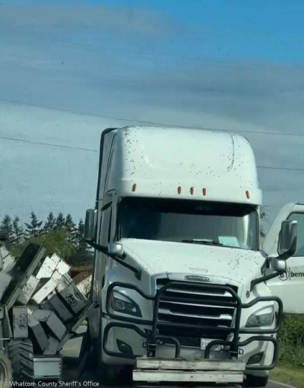 당시 트레일러 안에는 7만 파운드(약 31.75톤) 이상의 벌통이 담겨 있었다. 이 와중에 전복 사고가 발생해 트레일러 밖으로 벌통이 쏟아져나왔다고.