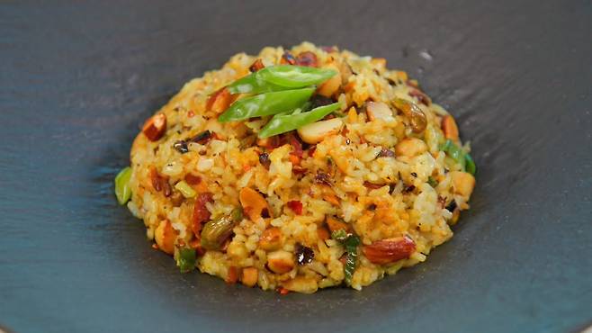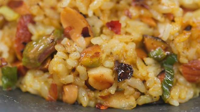 볶음밥에 들어가는 아몬드, 마카다미아, 피스타치오는 몸에 좋은 효과를 준다. 아몬드는 비타민 E가 풍부해 피부를 보호하는 데 도움을 주고, 마카다미아는 항산화 성분이 많아 세포를 보호하는 데 유리하다.