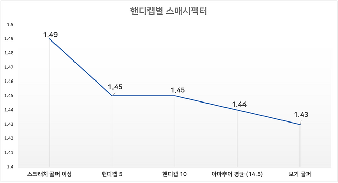 트랙맨 데이터에 의하면, 이 스매시 팩터는 핸디캡에 따라서도 그 평균 수치가 달라집니다.