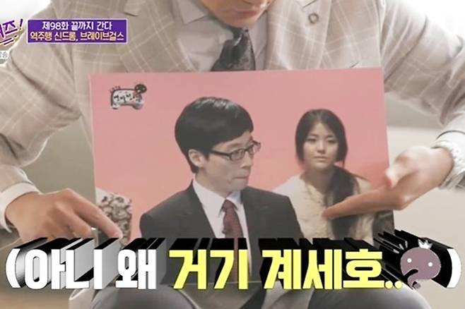 유재석은 “저는 오늘 유정 씨랑 인연이 있는 것을 알았다. ‘무한도전’ 연말 정산 때 나온 적이 있더라”라며 유정의 출연 사진을 공개했다.
