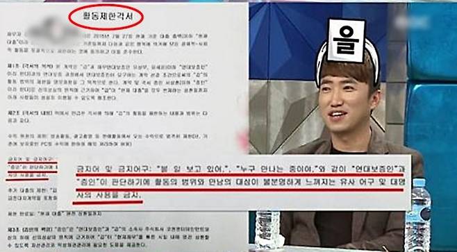잘못된 투자와 사업 실패, 그리고 사기까지 이어지면서 장동민은 유세윤과 유상무에게 돈을 빌려야 하는 상황까지 맞이했습니다. 이에 대해 유세윤은 "장동민 주변에 좋지 않은 사람들 탓에 장동민에게 빚이 생겨 돈을 빌려주고 공증 받은 계약서를 작성했다"면서 2억 4000만 원을 빌려주고 작성한 계약서를 공개했습니다. 공개한 계약서에는 '어디있어?'라고 물었을 때, '어떤 일을 하고 있는지, 어떤 관계가 있는 어떤 사람을 만나고 있는지' 정확하게 밝히라는 내용이 포함되었는데, 장동민에게 사기를 치려고 접근하는 사람들을 막기 위한 조항이었지요.