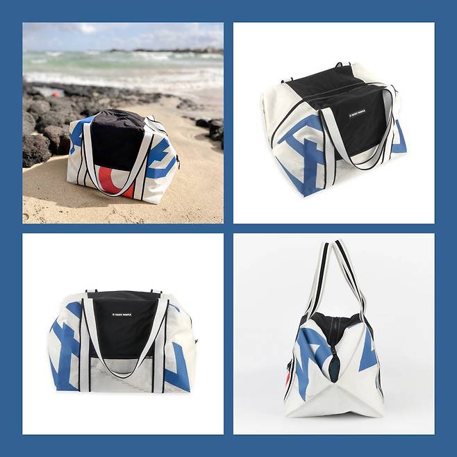 세일링 요트의 주요 동력원인 돛은 바람이 통하지 않아야 하고, 강풍을 장시간 버틸 수 있도록 튼튼해야 한다. 주로 나일론, 폴리에스터, 케블라 원단 등을 사용하는데 모두 석유로 만드는 합성섬유이다. 요트의 돛은 장시간 바람을 버티다 보니 약 3년 정도가 지나면 신축성을 잃고 늘어지게 되는데 이러면 수리를 하거나 버려지게 된다. 요트피플은 이 돛을 재활용하여 가방을 만드는 것이다. 기능은 뛰어나지만 요트에서의 쓰임을 잃으면 쓰레기가 되는 원단을 사용해 튼튼한 가방을 만드는 것이다. 왠지 돛으로 만든 가방을 메면 여행이 더 즐거워질 것 같다. 구매는 [여기](https://bit.ly/3NMeq5U)