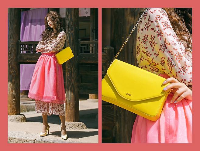 가죽 염색으로는 만들기 힘든 다양한 컬러감을 보여주는 것도 장점이다. 라임 옐로우처럼 쨍한 컬러감도 판매하고 있는데, 가죽에서 이렇게 채도가 높고 밝은 색감을 만드는 것은 쉽지 않은 방법이다. 그래서 환경을 챙기면서도 포인트로 메기 좋고, 출퇴근용 가방으로 메기에도 좋다. 체인으로 만든 스트랩으로 교체할 수도 있어서 여러 가지 분위기를 연출할 수 있다.