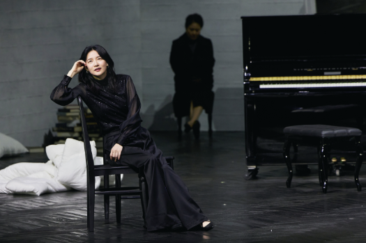 뒤로 갈수록 빛난다는 이영애의 '헤다가블러' 흥미로운 점은 모든 배우가 무대에 동시에 등장해 극 내내 퇴장 없이 머문다는 것이다. 자신의 장면이 아닐 때는 무대 한 편의 의자에 앉아 헤다를 응시하는 배우들의 존재 자체가 헤다에 대한 사회적 압박과 감시를 형상화했다고 함.