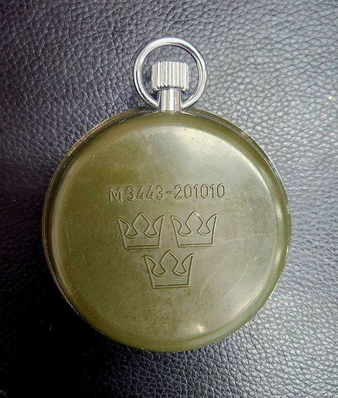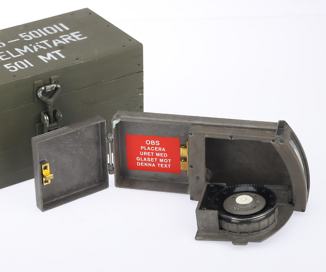 ※ 스웨덴 군(국방부)은 1942년경부터 군용 장비에 ‘세개의 왕관’을 통일된 소유 표식으로서 적용하라는 지침(property mark: three crowns)이 있어, 쌍안경·지도함·장비 케이스 등에도 해당 마크가 쓰였습니다.