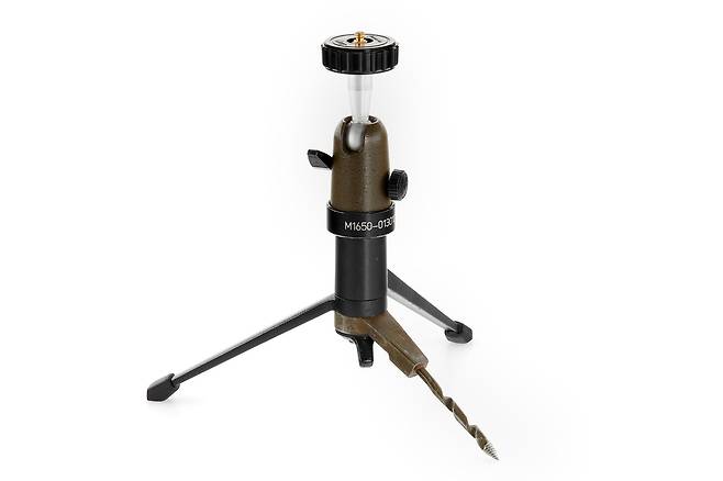 이번의 소개품은 Military Leica 중에서도 군사 측량용으로 제작된 삼각대인데 이는 보통의 Leica 특유의 테이블용 삼각대와는 유사한 크기와 형태, 사용방식을 취하지만 독특하게 세 개의 다리 중 한 쪽 다리가 목재(나무)용 드릴로 교체되었으며 군용다운 Olive green으로 칠해진 Linhof 볼 헤드가 장착된 독특하고 재미있는 특수 목적의 측량용 삼각대입니다.