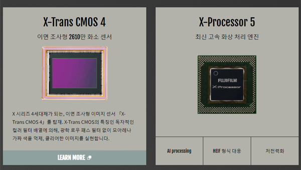 X-M5는 이면조사형 약 2,610만 화소 'X-Trans CMOS 4' 이미지 센서와 고속 이미지 프로세싱 엔진 'X-Processor 5'를 탑재해 고화질 촬영이 가능한 미러리스 카메라다.