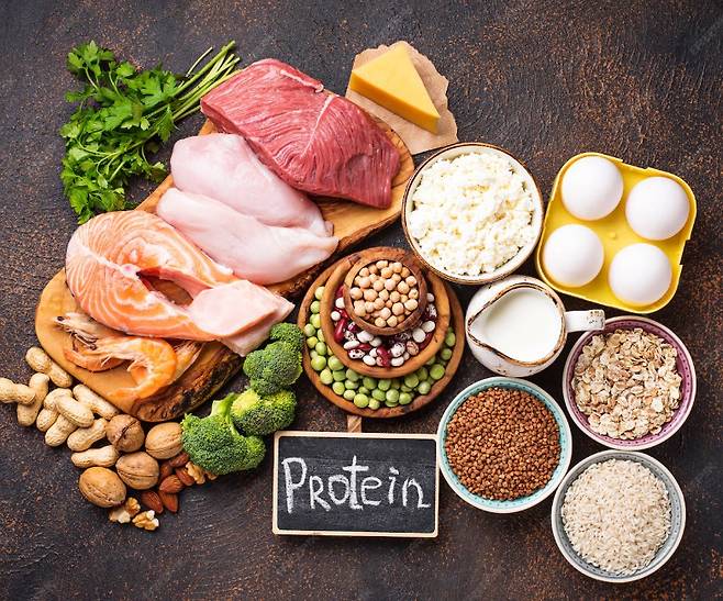 다만 무조건 많이 먹는다고 근육이 많이 생성되는 것은 아니다. 적절한 단백질 권장 섭취량은 하루에 몸무게 1㎏당 1~1.2g이다. 60㎏의 성인이라면 하루 60~72g의 단백질을 섭취하는 것이 적절하다.