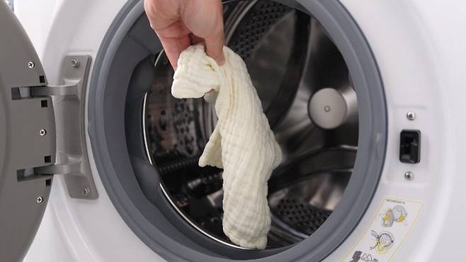 먼저, 세탁기를 비우는 것부터 시작할게요. 세탁물은 전부 꺼내 두시고, 세탁기 내부에 남아 있는 이물질을 제거하기 위해 젖은 스펀지로 한 번 싹 닦아주세요. 이게 첫 단계입니다.
