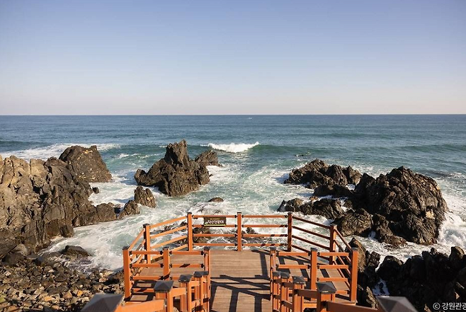 그 주인공은 바로, 섬에서 산이 된 독특한 지형의 덕봉산 해안생태탐방로.동해의 거친 파도와 기암괴석, 대나무 숲길과 천국의 계단을 모두 품은 이 길은,지금껏 숨겨져 있던 시간의 틈을 걷는 듯한 감동을 선사합니다.