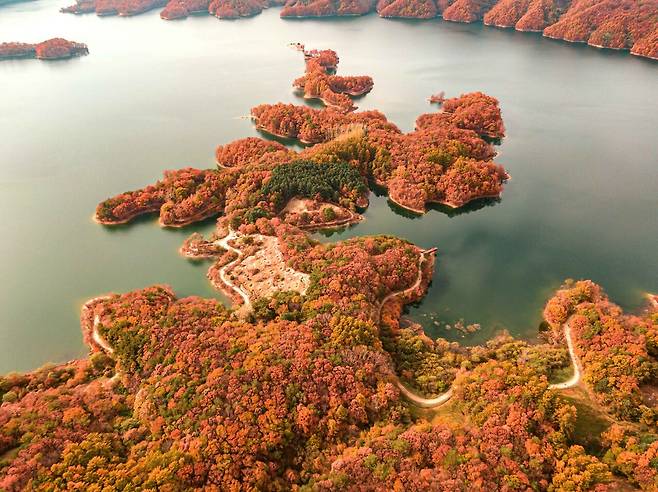 2000년 횡성댐이 완공되면서 횡성호라는 인공호수가 만들어졌습니다. 횡성호를 중심으로 자연스럽게 둘레길이 형성되었는데요. 횡성호수길은 총 31.5km의 6개 트레킹 코스로 조성되어 있으며, 그중 5구간 가족길(9km)은 자연의 아름다움과 편안한 트레킹을 동시에 즐길 수 있는 매력적인 코스입니다.