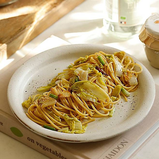 리얼푸드가 소개하는 파스타 요리는 알배추의 식감을 즐길 수 있는 ‘알배추 파스타’입니다. 아삭하고 달콤한 알배추를 파스타 면에 넣은 요리입니다.