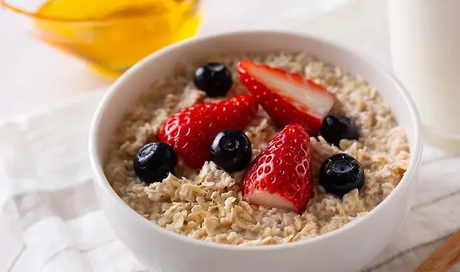 오트밀은 식이섬유와 복합 탄수화물이 풍부하여 소화를 느리게 하고