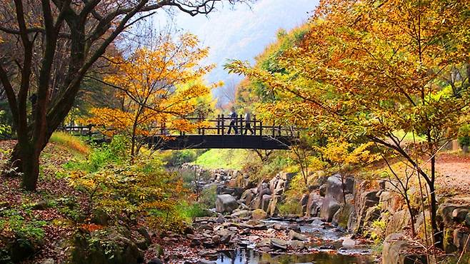 수옥정 관광지는 폭포만큼이나 연풍새재 수변 생태공원이 매력적이다. 데크길과 전망대, 산책로가 정갈하게 이어져 있어 사계절 내내 걷기 좋은 힐링 명소다.