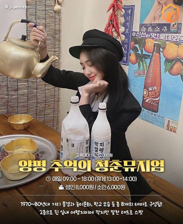 서울에서 가까운 양평 추억의 청춘뮤지엄입니다. 용문산 관광단지에 위치한 레트로 여행지로 작지만 알찬 실내 뮤지엄인데요. 1층과 2층으로 구분되어 있으며 입구에서 1시간 2,000원의 요금으로 교복을 대여해 보다 생생하게 공간을 즐길수도 있습니다.