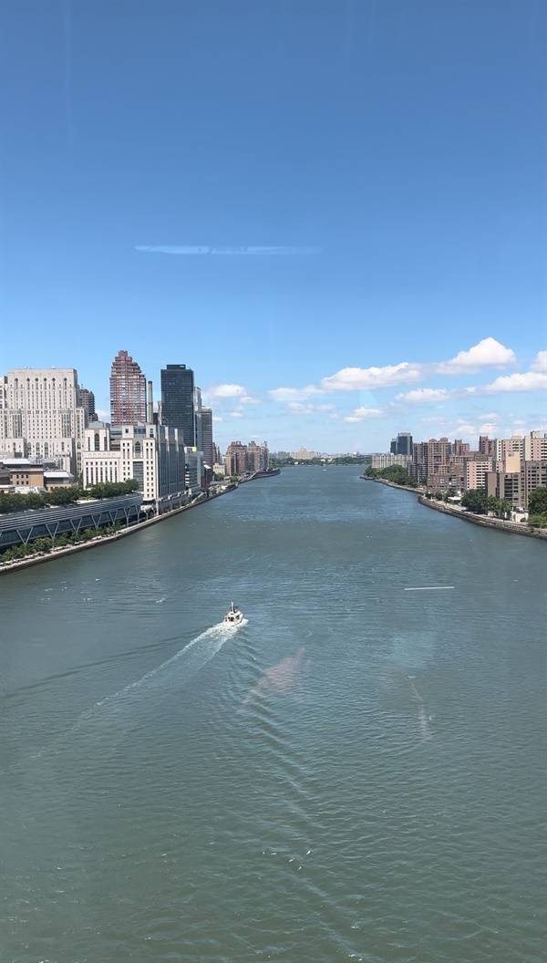 "우연히 트램을 마주한 그날부터 낮이든 밤이든 5번가에 있는 플라자호텔에서 동쪽으로 쭉 걸어가 루스벨트 아일랜드 트램을 왕복하는 것이 뉴욕에서 나만의 코스 중 하나가 되었다. 특히 트램에서 보는 해질녘의 뉴욕하늘과 맨해튼의 야경은 여행 중 벅찬 설렘을 느낄 수 있는 순간이었다." (<여기, 내가 사랑한 뉴욕이 있어>, p. 73)