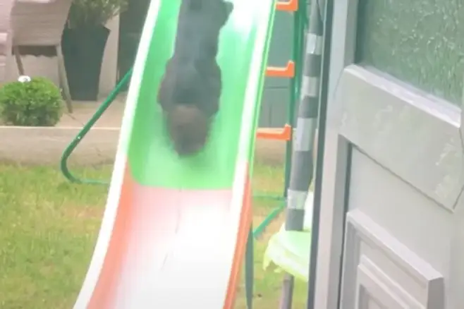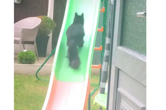 영국의 한 가정 마당에 설치된 어린이용 미끄럼틀 위로 고양이 한 마리가 올라갔습니다. 이후 미끄럼틀을 타듯 아래로 미끄러져 내렸습니다.