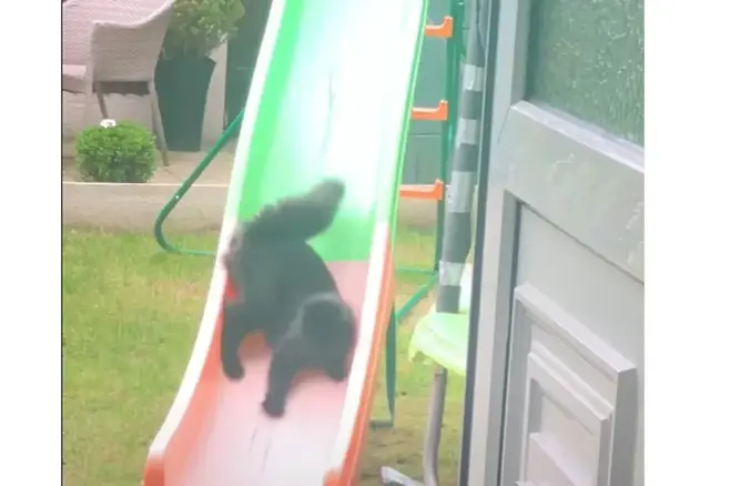 이 장면은 단발성 행동이 아니었습니다. 고양이는 몇 차례 더 미끄럼틀을 타며 유사한 행동을 반복했습니다.
