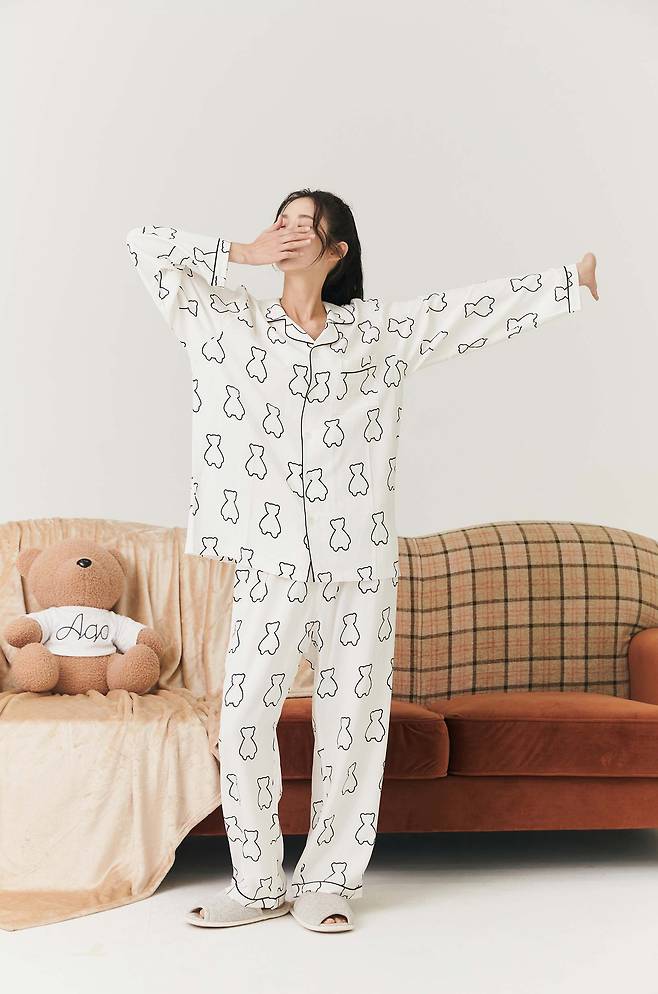 아코의 시그니처 곰돌이를 파자마에 어울리게 패턴으로 구성했는데요.