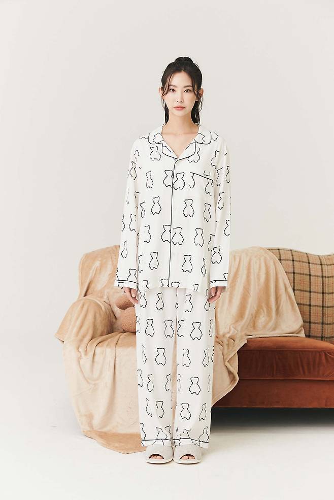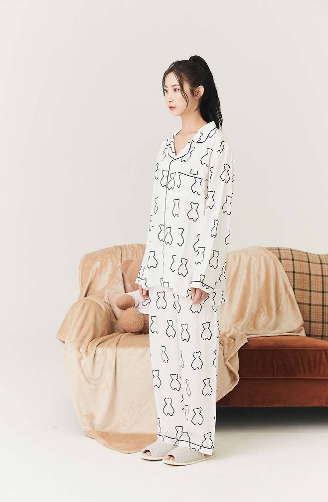 세은은 곰돌이 무늬 화이트 파자마를 착용했습니다.
