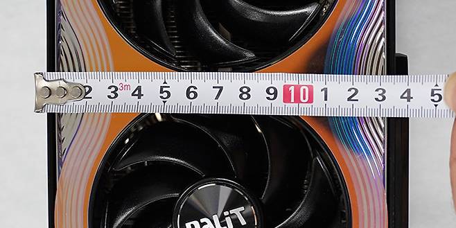 더불어 주목할 점은 바로 세로 길이다. 흔히 그래픽 카드의 스펙표에는 가로 길이와 두께만 표시되는 게 일반적이다. 잘 알다시피 가로 길이는 PC 케이스의 전면부와 후면부 사이의 길이에 그래픽 카드가 수납(?)될 수 있느냐를 판가름하는 척도가 된다. 그래픽 카드를 장착하는 데 가장 먼저 넘어야 할 산이기도 하다. 그리고 두께는 케이스 후면의 PCI 칸 수를 결정한다. PALIT 제품의 경우 실제 조립해 보면 3칸 반 정도 차지한다. 캡처카드나 사운드 카드 같은 추가 PCI 기판이 있다면 꼭 고려해 봐야할 사항이다.
