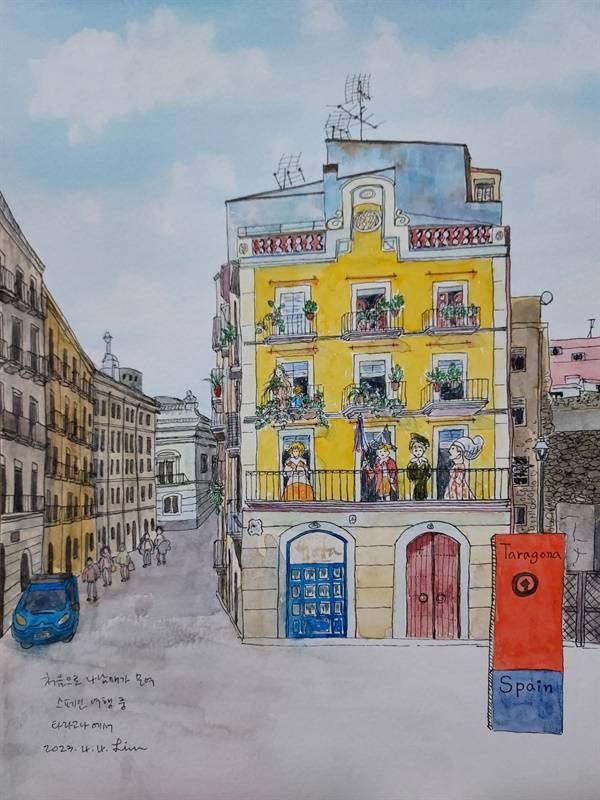 | ▲ 타라고나 어반스케치 스페인의 타라고나 건물 벽화 어반스케치 |