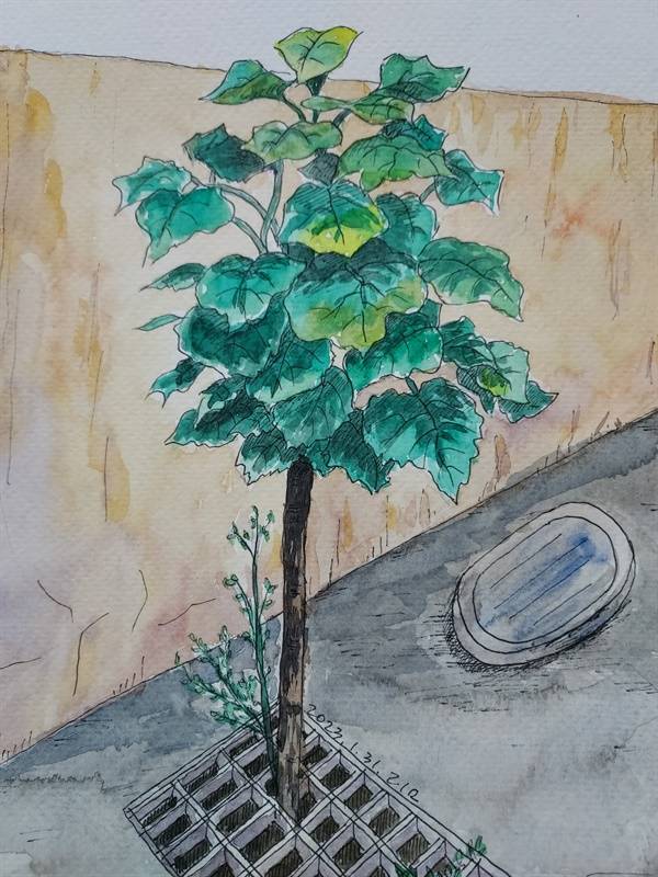 이제 물감을 칠할 차례다. 햇빛이 어느 방향에서 비치는지를 고려해 잎의 밝은 부분과 어두운 부분을 생각하면서 색을 입혀야 한다고 선생님께 배웠다. 그런 식으로 어반스케치를 하다 보면 모든 과정 하나하나가 중요해서 허투루 생각할 게 없었다.