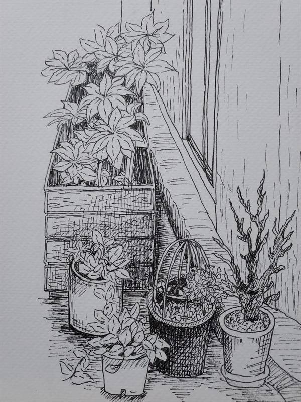 | ▲ 화분에 식물, 펜드로잉 어반흐케치 수업 중에 그린 그림 |