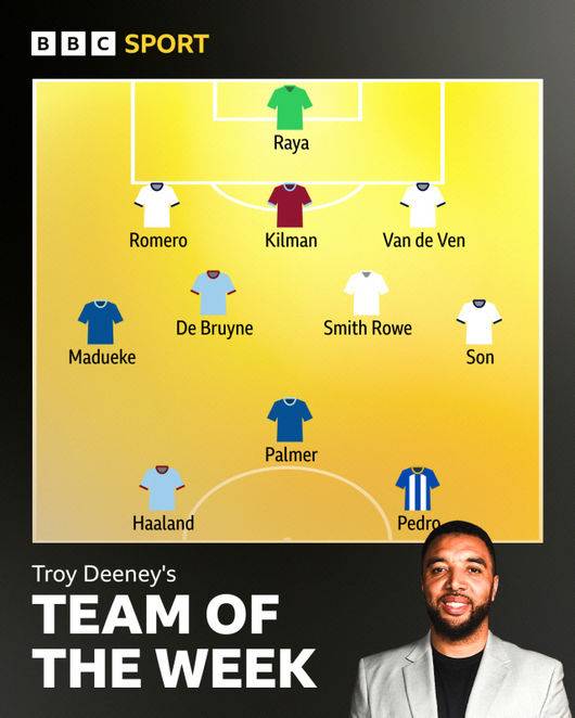 1위의 주인공은 마두에케였다. 그는 울버햄튼 원더러스전에서 해트트릭을 터트렸다. 90MIN은 "마두에케는 경기 전 야유를 받았지만, 아무 영향도 받지 않았다. 그는 계속해서 우측 뒷공간을 파고었고, 파머의 패스를 받아 마무리했다. 후반전 14분 동안 해트트릭을 기록하며 첼시가 울버햄튼을 무너뜨리도록 도왔다"라고 박수를 보냈다.