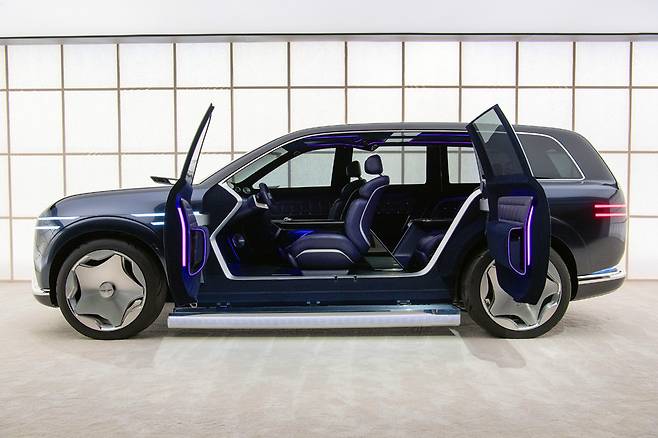 제네시스가 차세대 플래그십 전기 SUV GV90을 오는 2026년 출시한다.