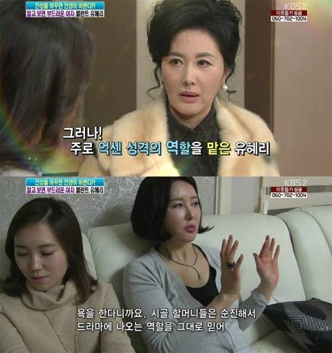 유혜리 역시 강한 인상 탓에 악역을 주로 맡았는데 까칠해보일 것 같다는 선입견때문에 힘든적도있었다.