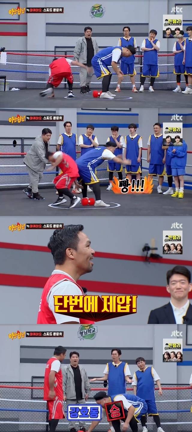 "前연예인 싸움 순위 1위" 강호동, 파퀴아오 엉덩이로 단번에 제압(아형)[결정적장면]