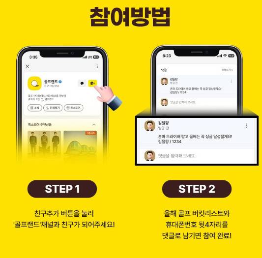 1) 하단 버튼을 눌러 골프랜드 톡채널과 친구가 되어주세요!