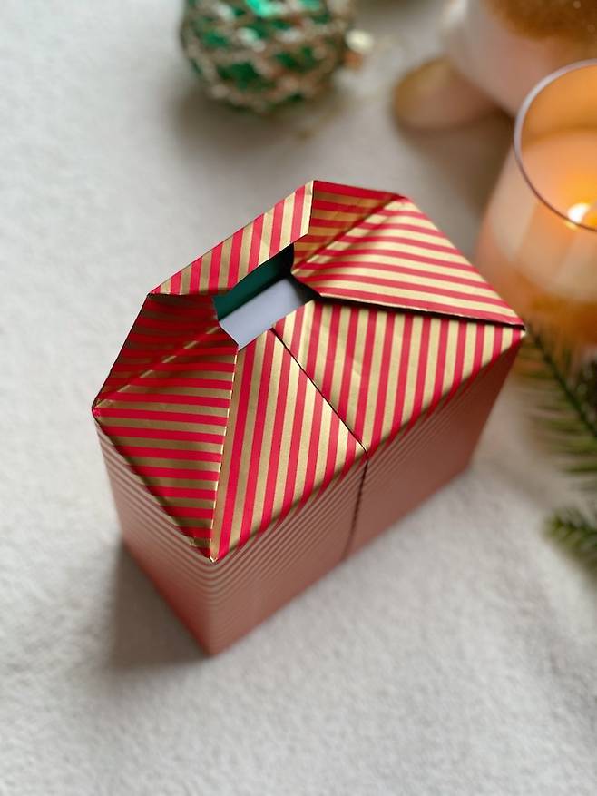화려한 기술 없이도 기본 접기로 간단히 완성할 수 있는 선물 포장법이랍니다.