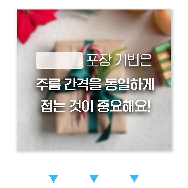 높이 부분도 첫 번째 포장한 방법대로 삼각형을 만들어 접어 넣어서 마무리해 주세요.
