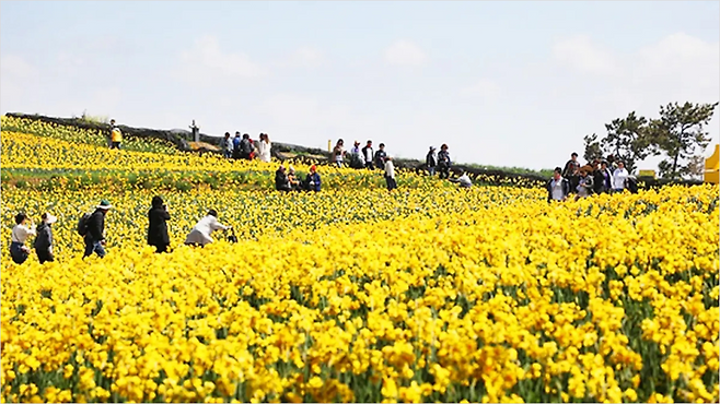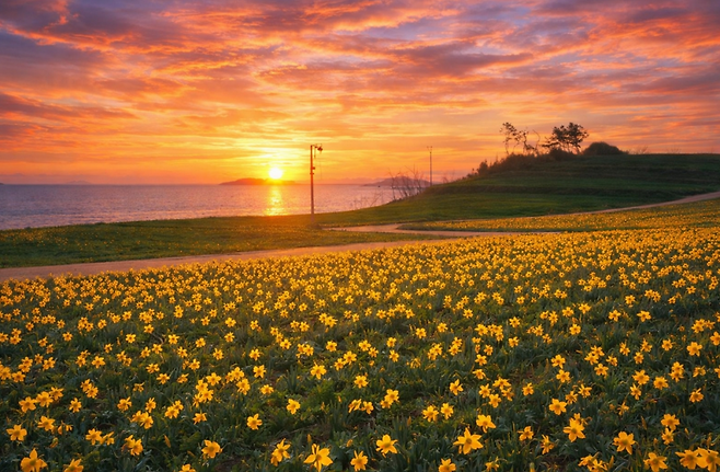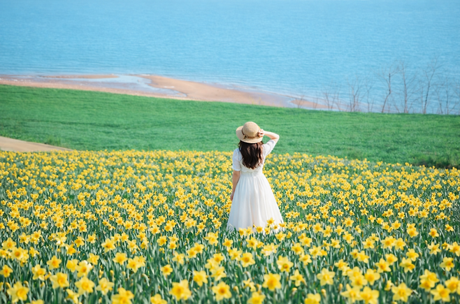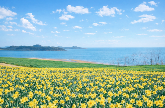 수선화는 오래 피어 있는 꽃은 아니지만, 이곳에서는 그 시간이 유난히 깊게 느껴집니다. 섬 전체를 덮은 노란빛, 그리고 그 안을 천천히 걷는 시간. 이 두 가지가 겹쳐지면서 하나의 기억으로 남습니다.