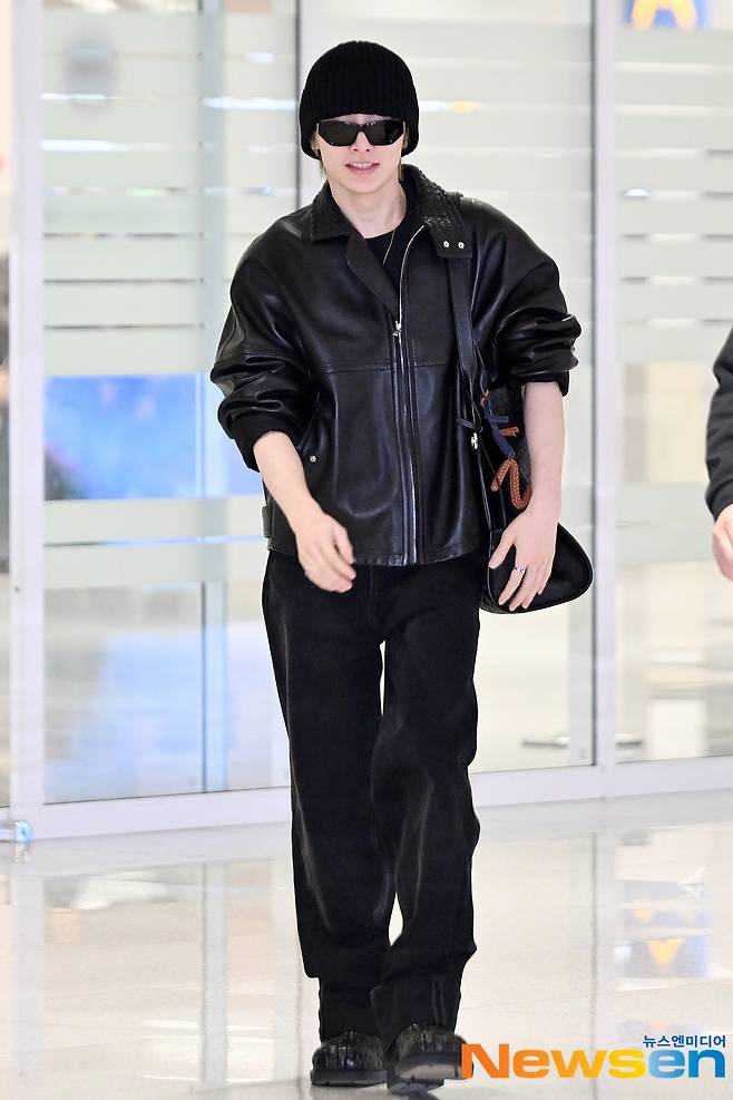 스트레이 키즈(Stray Kids) 멤버 아이엔이 3월 2일 오후 인천 중구 운서동 인천국제공항 제 2여객터미널을 통해 밀라노 패션위크 일정을 마치고 이탈리아 밀라노에서 입국하고 있다.