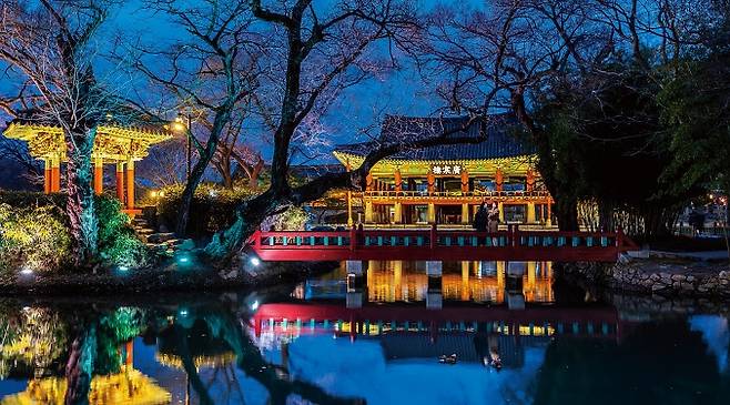 광한루원은 조선 전기에 조성된 정원으로 ‘춘향전’의 배경지입니다. 개방적인 공간에서 느긋하게 시간을 보내기 좋은 곳입니다. 광한루뿐 아니라 완월정, 영주각 등 각종 전각에 오를 수 있고 넓게 펼쳐진 잔디밭에서 망중한을 즐길 수도 있습니다. 종종 남원시에서 ‘광한루원에서의 피크닉’을 주제로 돗자리 등을 대여해주기도 하는데 ‘남원 문화관광’ 누리집(namwon.go.kr/tour)을 미리 확인해보세요. 꼭 잔디밭에 앉아 있지 않아도 호수에 사는 원앙과 잉어를 구경하는 아이들을 따라 이곳저곳을 산책하다 보면 담 밖의 시간이 아스라이 느껴집니다.