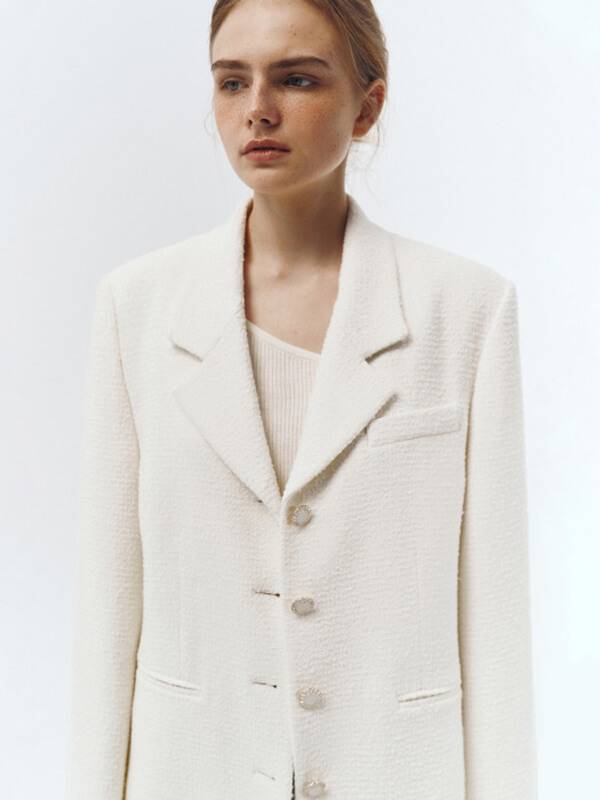 오앨은 빈티지와 모던 사이, 캐주얼과 포멀의 중간에서 과거에 대한 향수를 기반으로 자신만의 트렌드를 만들어가는 여성을 타깃으로 한 빈티지 로맨틱 무드의 브랜드다. 매 시즌 다른 스토리를 담은 컬렉션으로 오엘만의 감성이 담긴 컬렉션을 선보인다. BOUCLE TWEED JACKET은 다양한 색감의 원사가 섞여 매력적인 무드를 연출하는 제품이다. 적당한 스탠더드 핏으로 우아함까지 높인다.