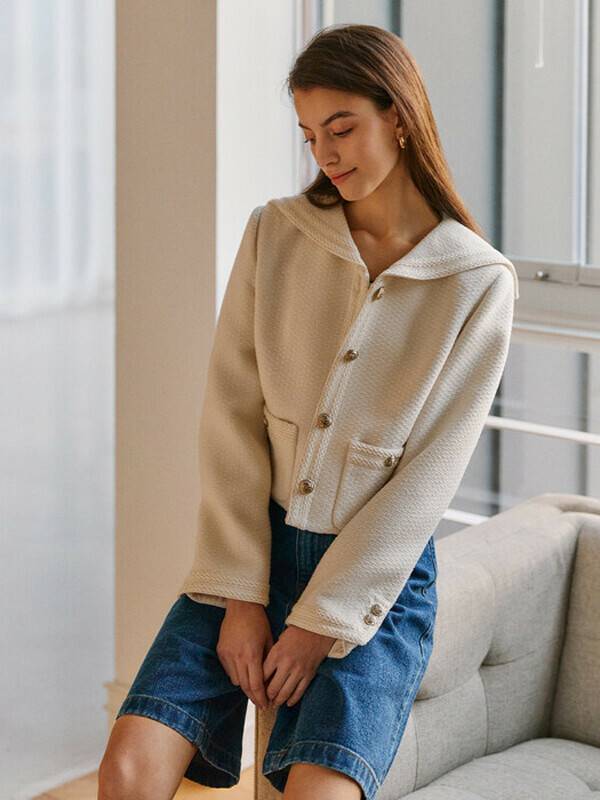오스트카카는 미니멀하고 실용적인 디자인 감성을 추구하며, 새롭게 재해석된 모던한 클래식과 실용적인 아이템을 선보인다. 세일러 트위드 크롭 자켓은 조직감이 살아있는 트위드 원단에 금장 단추가 더해져 클래식하고 여성스러운 무드가 완성된다. 트위드 원단과 어우러지는 테이프 장식으로 마감하여 완성도를 높였다.